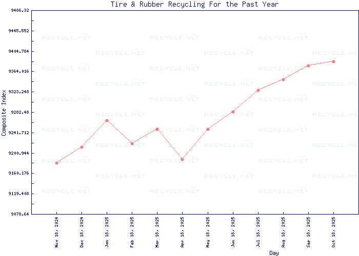 The Tire & Rubber Recycling Composite Index tracks the changing market prices in the rubber and tire recycling industry . The Index consists of a weighted basket of specific benchmark grades of scrap rubber and tire materials. The Index includes snapshots of 5 viewpoints of market trends : the past 7 days, past 30 days, past 90 days, past 1 year and past 2 years.