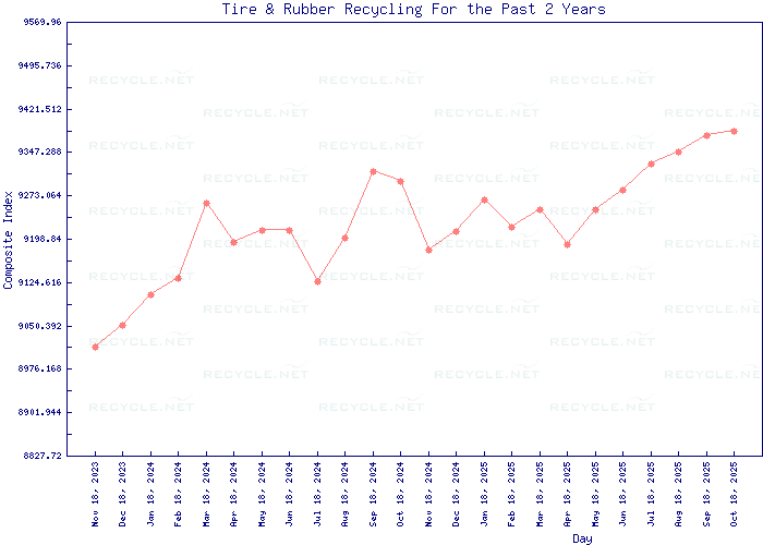 The Tire & Rubber Recycling Composite Index tracks the changing market prices in the rubber and tire recycling industry . The Index consists of a weighted basket of specific benchmark grades of scrap rubber and tire materials. The Index includes snapshots of 5 viewpoints of market trends : the past 7 days, past 30 days, past 90 days, past 1 year and past 2 years.
